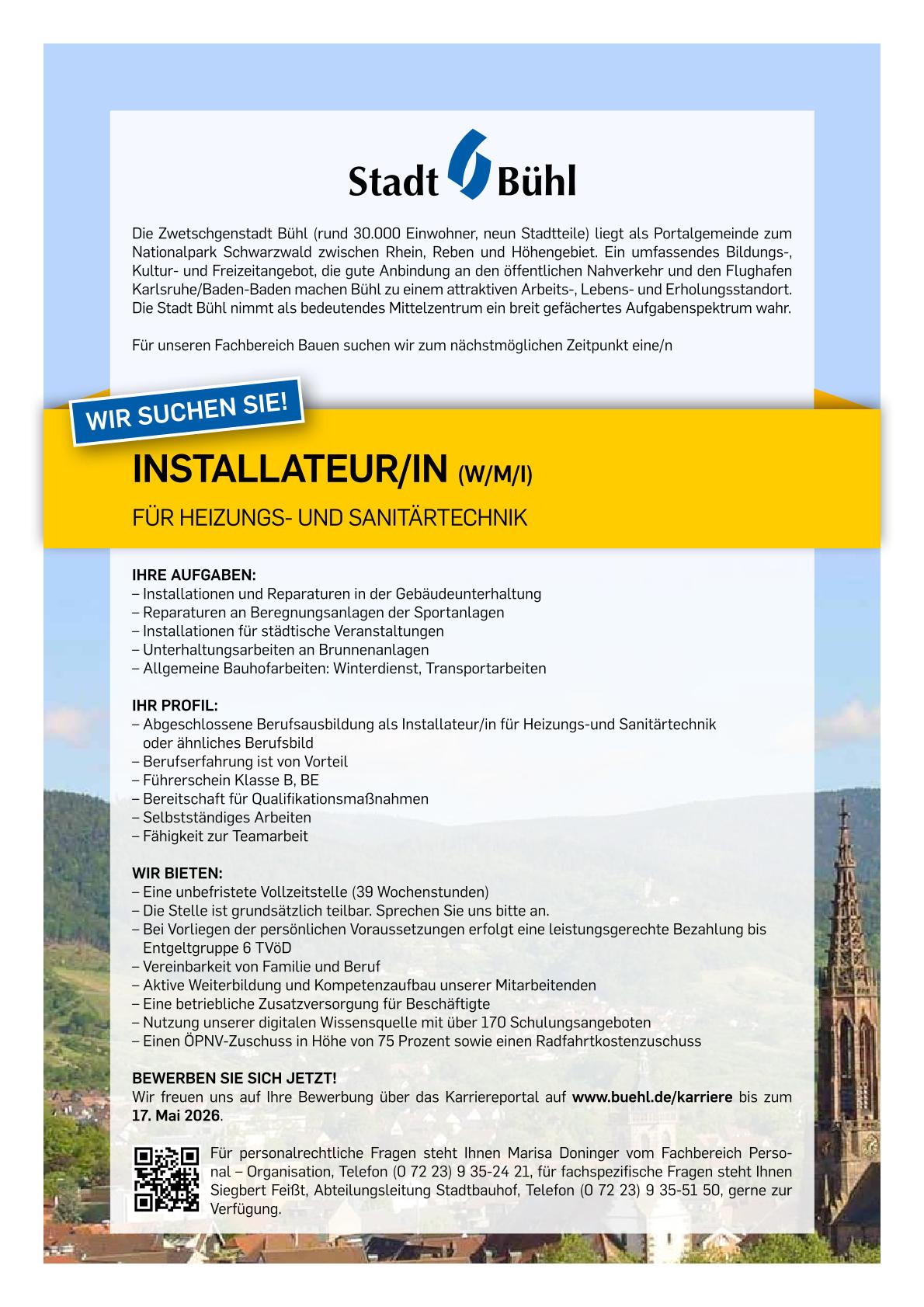 Installateur/in für Heizungs- und Sanitärtechnik (w/m/i)
