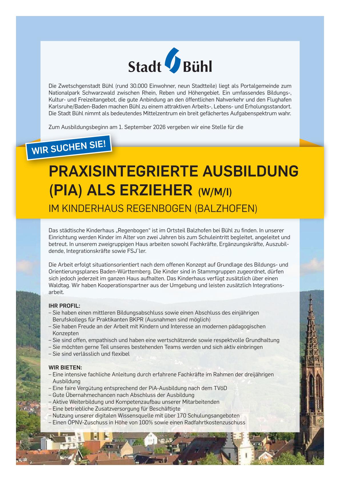 Praxisintegrierter Ausbildungsplatz zum Erzieher (PIA) (w/m/i)